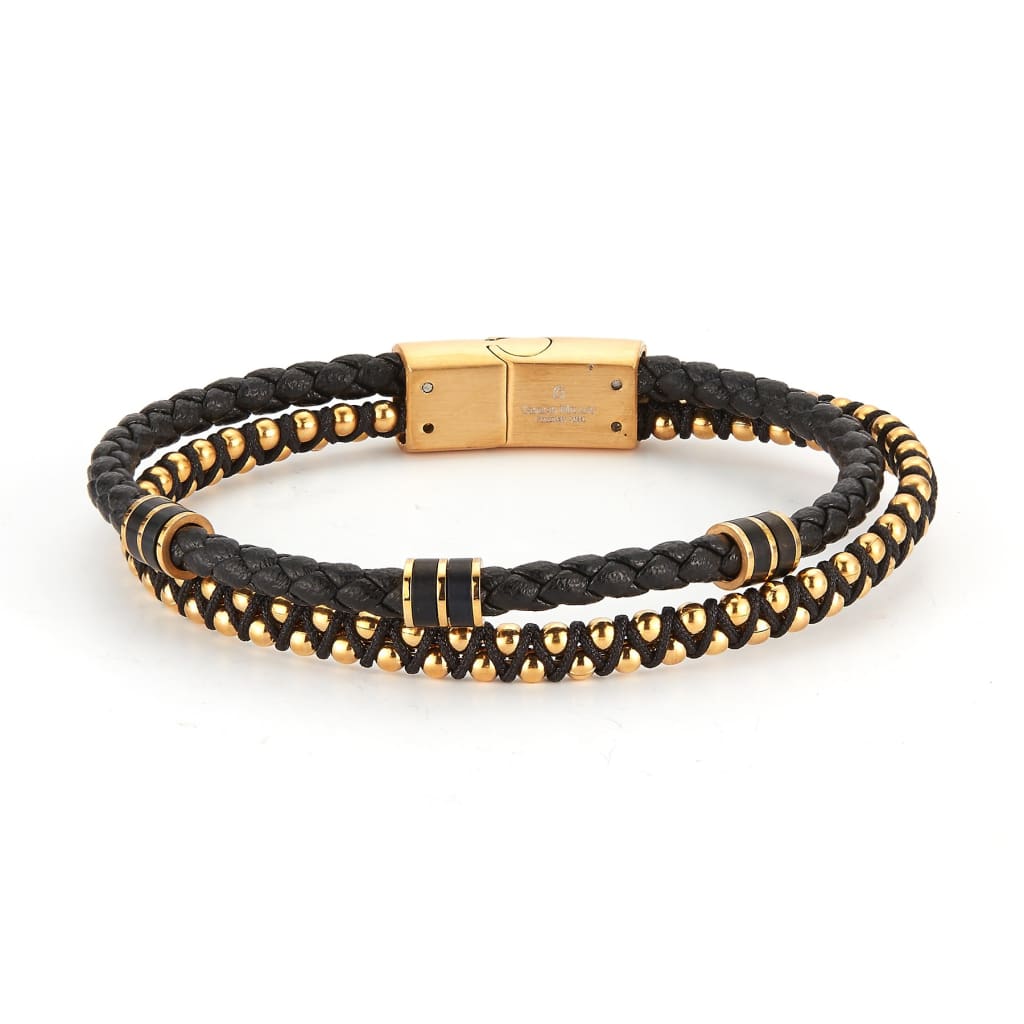 The Giorgio Milano 2027 bracelet brings a bold fusion of braided leather craftsmanship and striking metallic detailing. Featuring a double-strand design intricately wrapped with polished metal beads, this bracelet delivers a rugged yet refined look that stands out effortlessly. Accented with IP Gold or Stainless Steel finishes and secured with a durable magnetic clasp, it is the perfect everyday statement piece for modern men.