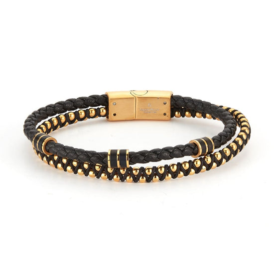 MATERIAL:  Genuine Braided Leather, IP Gold & Black-Plated Stainless Steel