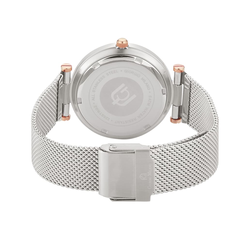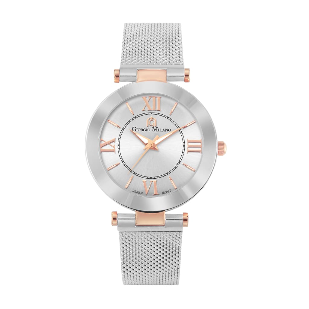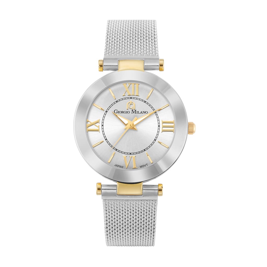 A sleek and sophisticated timepiece, this watch features a stainless steel case paired with a refined mesh band for a modern yet timeless appeal. The 36mm case houses a precise Japanese quartz movement, ensuring accuracy and reliability. With water resistance up to 30 meters (98 feet), it is designed for both style and practicality.