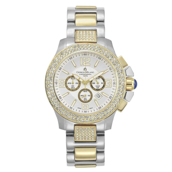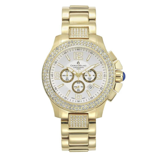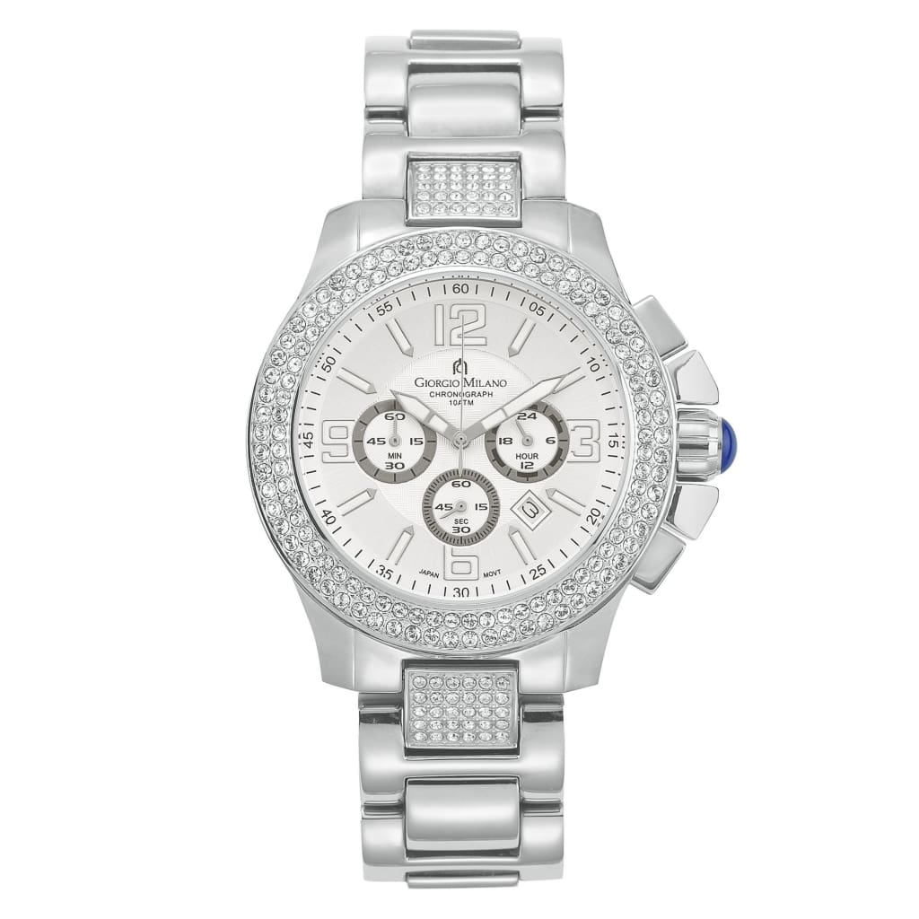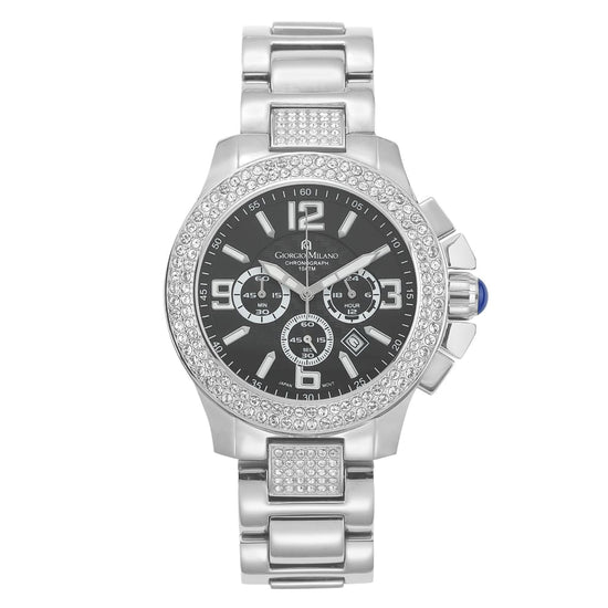 En pocas palabras, PRISCILL es un reloj precioso. Su esfera redonda está rodeada de dos filas de cristales Swarovski que le confieren un estilo opulento. Aunque su tamaño es para hombre, muchas mujeres lo compran por su hermosa presentación. Corona lateral con cabujón azul, brazalete de acero inoxidable con cierre desplegable para un cierre seguro. ¡No querrás perder este reloj! Ventana de fecha y funciones de cronógrafo, números de gran tamaño para una fácil referencia. PRISCILL es resistente al agua hasta 100 m, por si te atreves a nadar. ¡Es tan activo y hermoso (o apuesto) como tú!