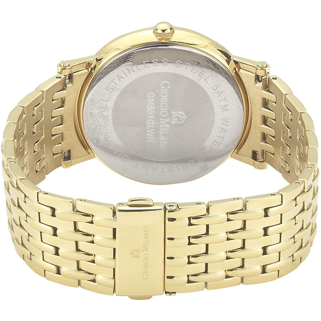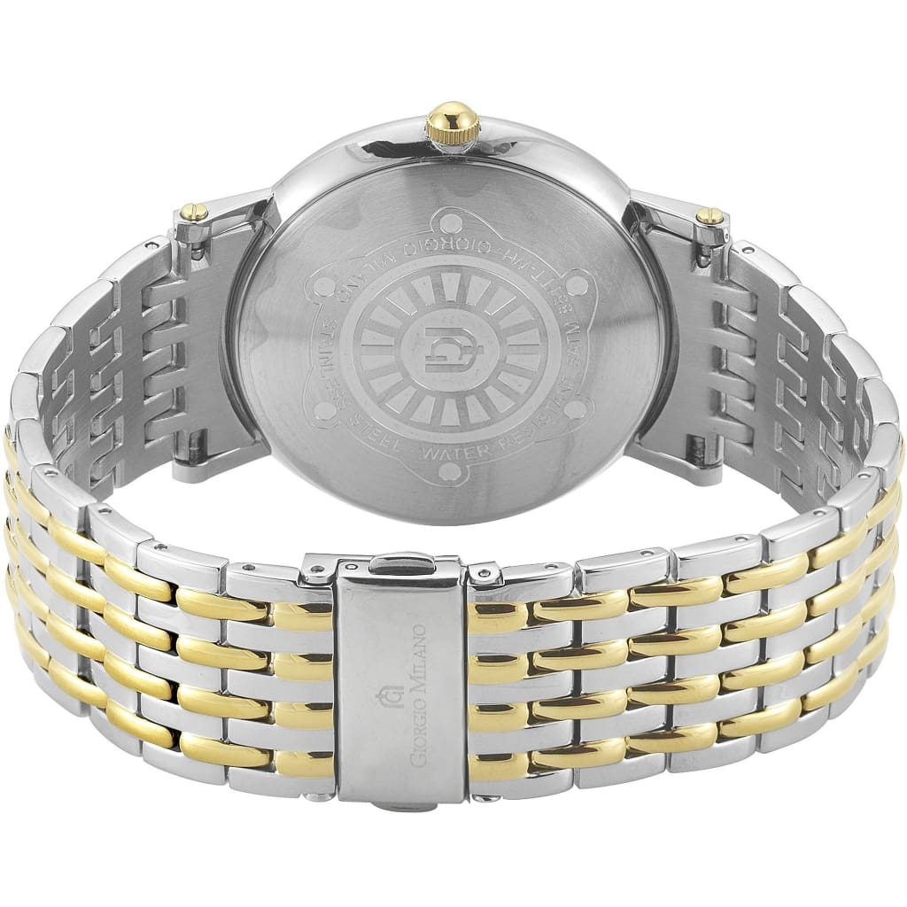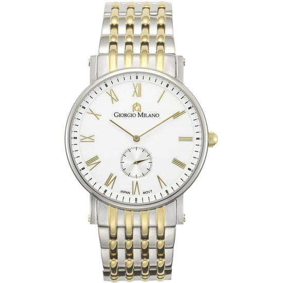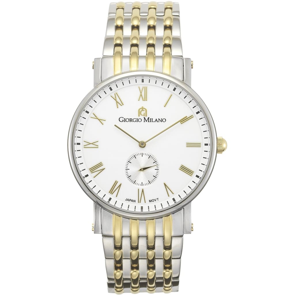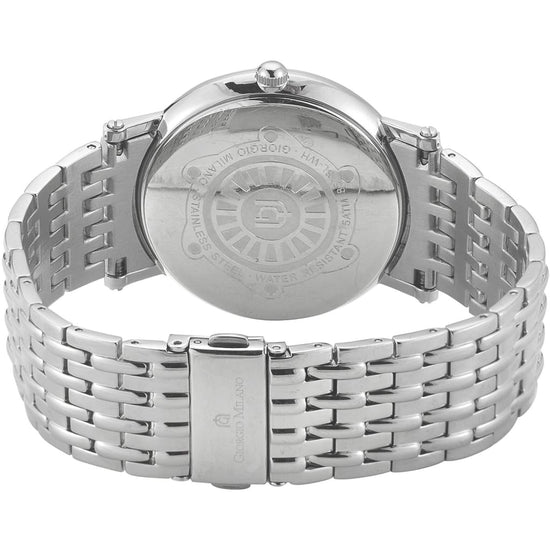 La esfera, sencilla y bien diseñada, es perfectamente redonda y cuenta con finas manecillas de horas y minutos para marcar el tiempo. Una subesfera independiente justo encima del VI indica el paso de los segundos si desea hacer una especie de cuenta regresiva. Esa pequeña esfera equilibra la ubicación de nuestro logotipo de Giorgio Milano justo debajo del XII.