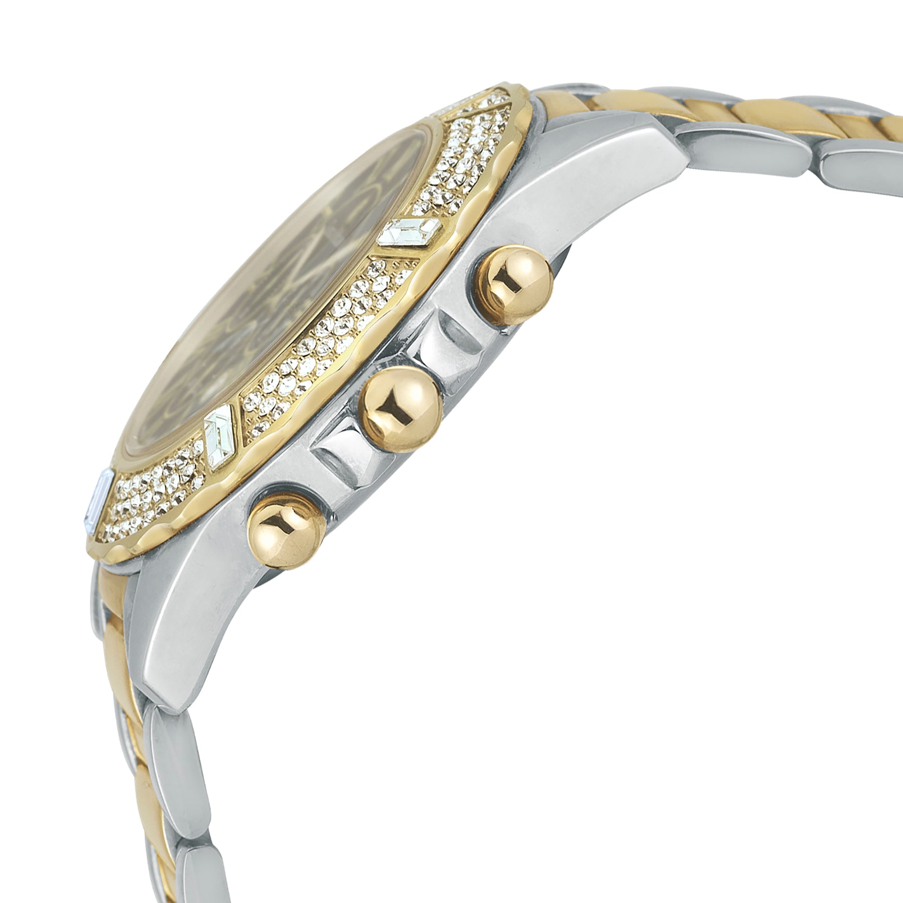 - Brazalete de acero inoxidable y caja de 38 mm con cristales Swarovski