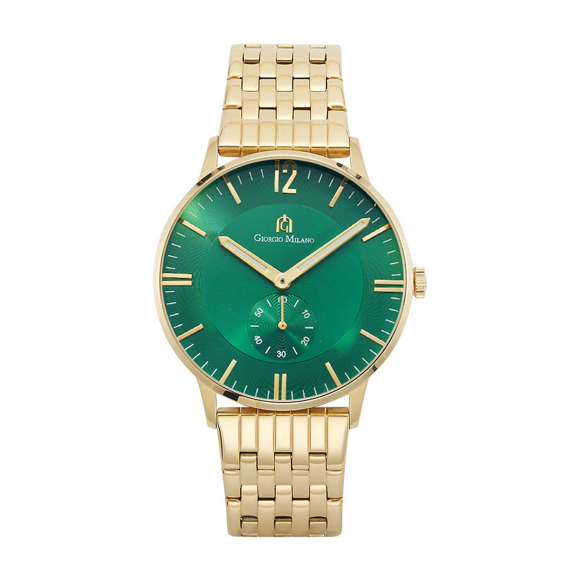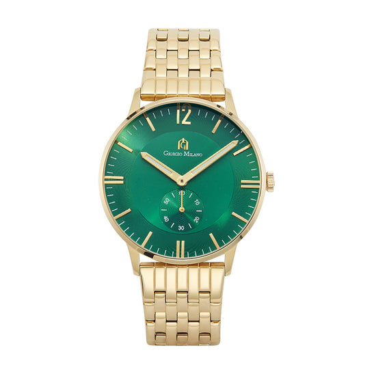 Las manecillas de horas y minutos son grandes y luminosas. El segundero independiente con su propio pequeño dial en la parte inferior equilibra nuestro logotipo distintivo justo debajo del 12. El movimiento de cuarzo japonés mantiene una hora perfecta y confiable.