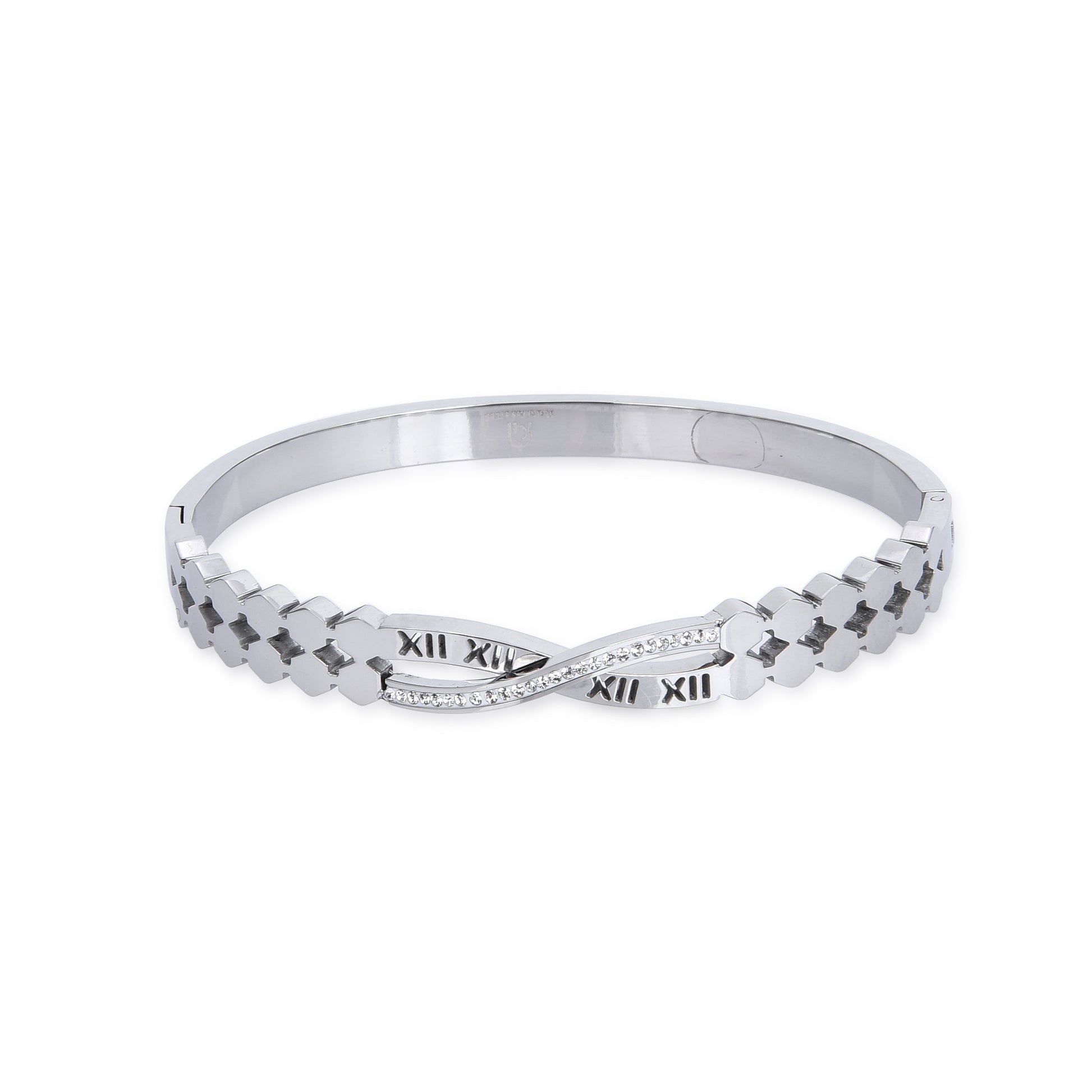 Stainless Steel Roman Numeral Link Bangle with Cubic Zirconia