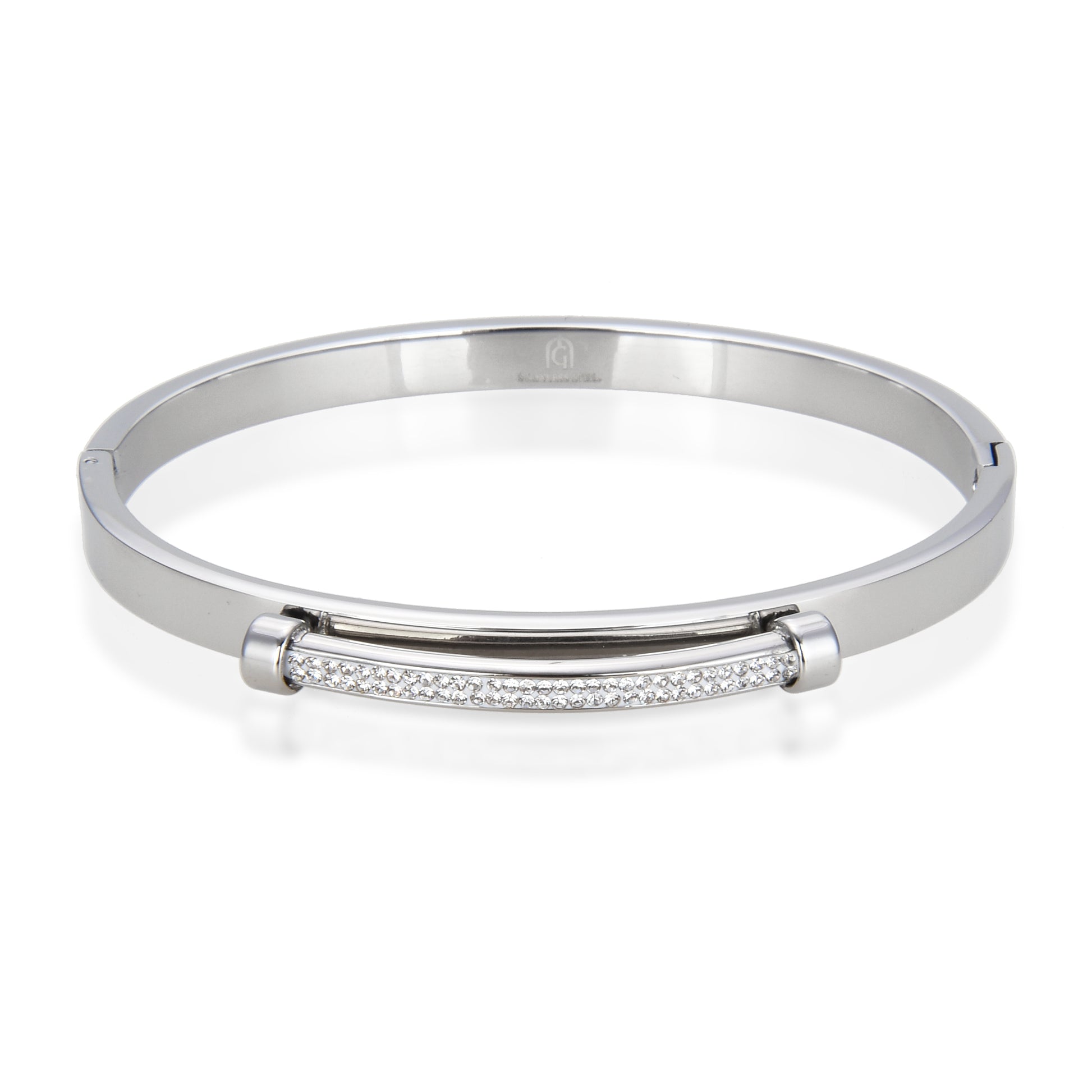 Stainless Steel Pavé Bar Bangle Bracelet with Cubic Zirconia