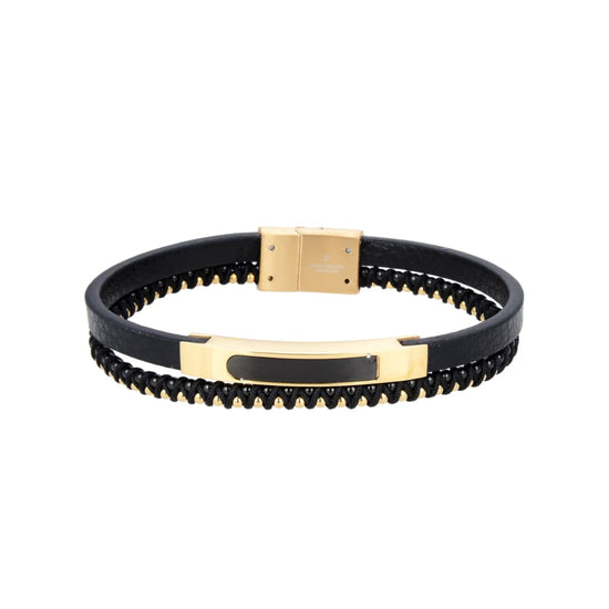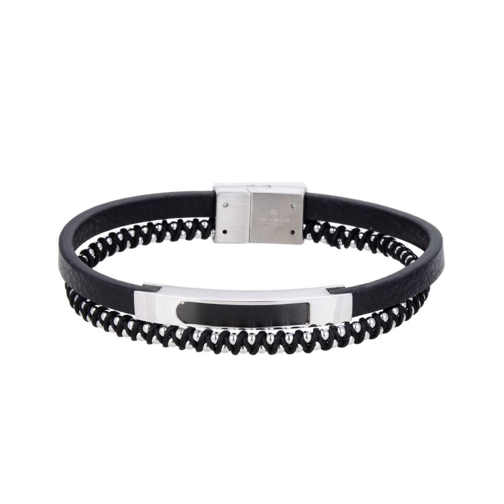DESIGN: Dual-layer bracelet with a sleek ID bar and contrast braided wrap
