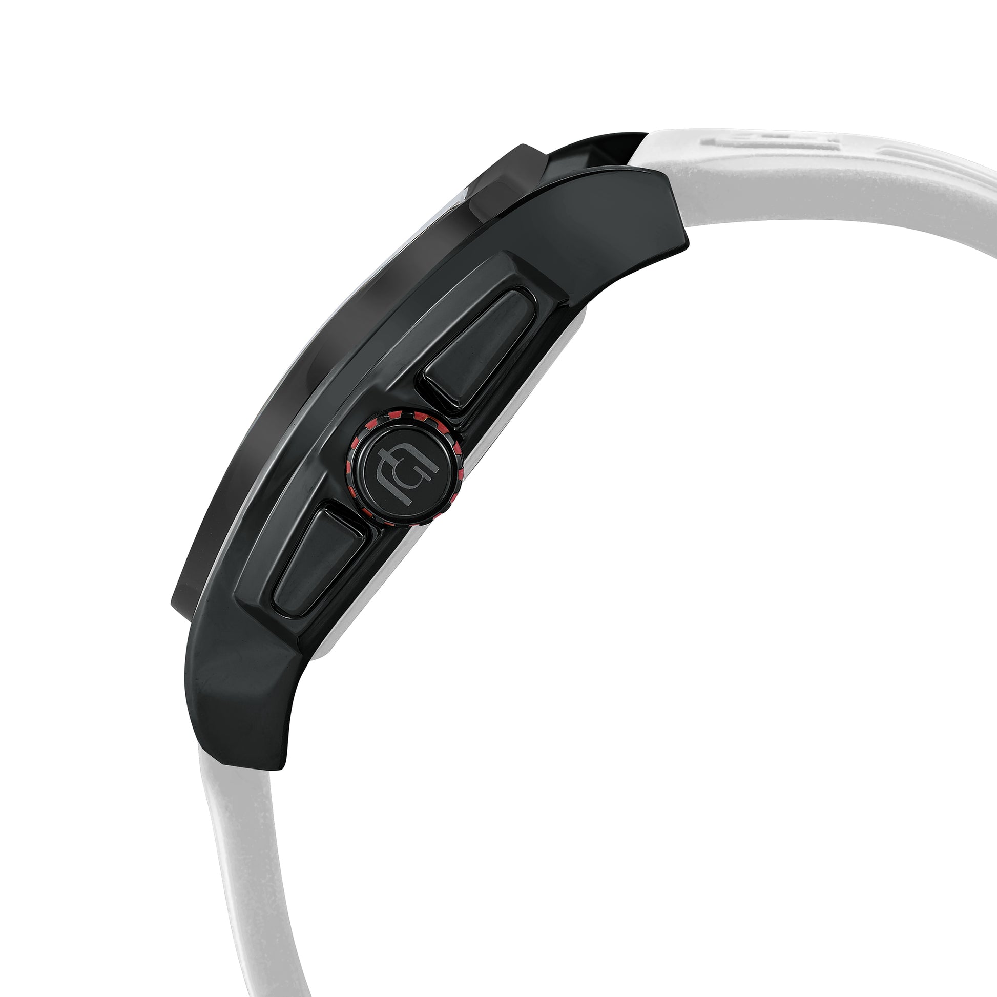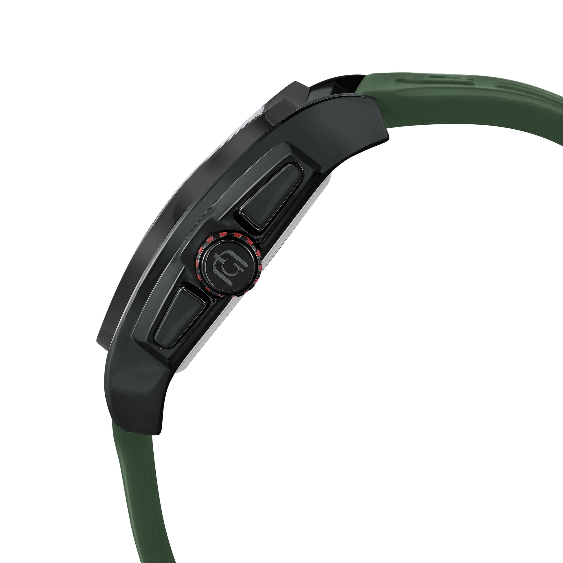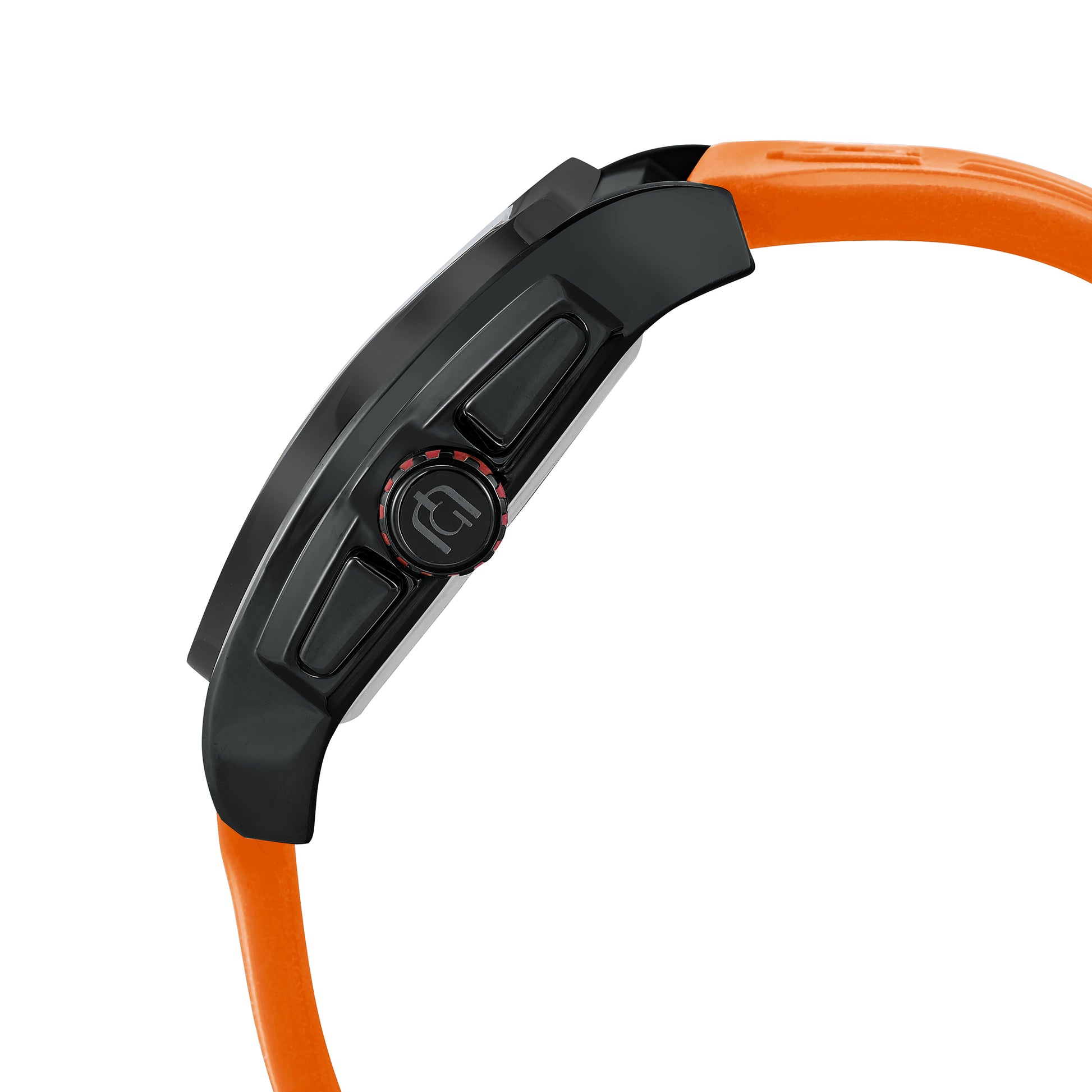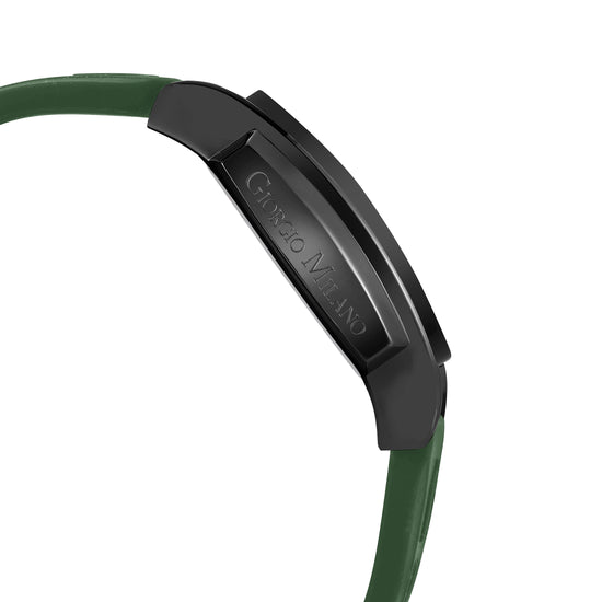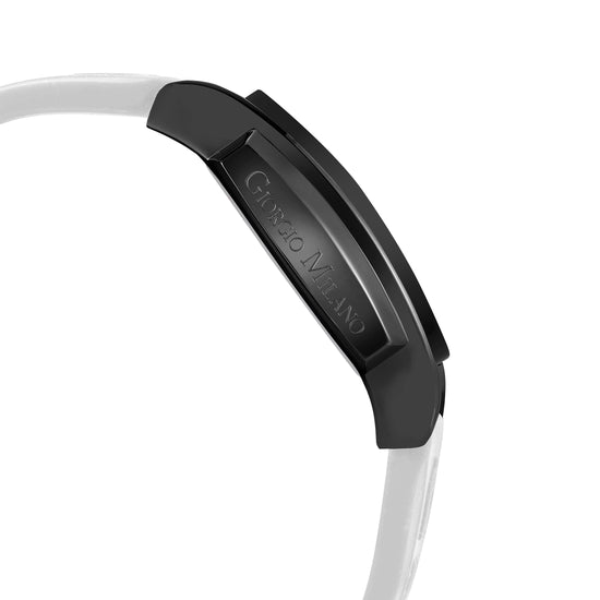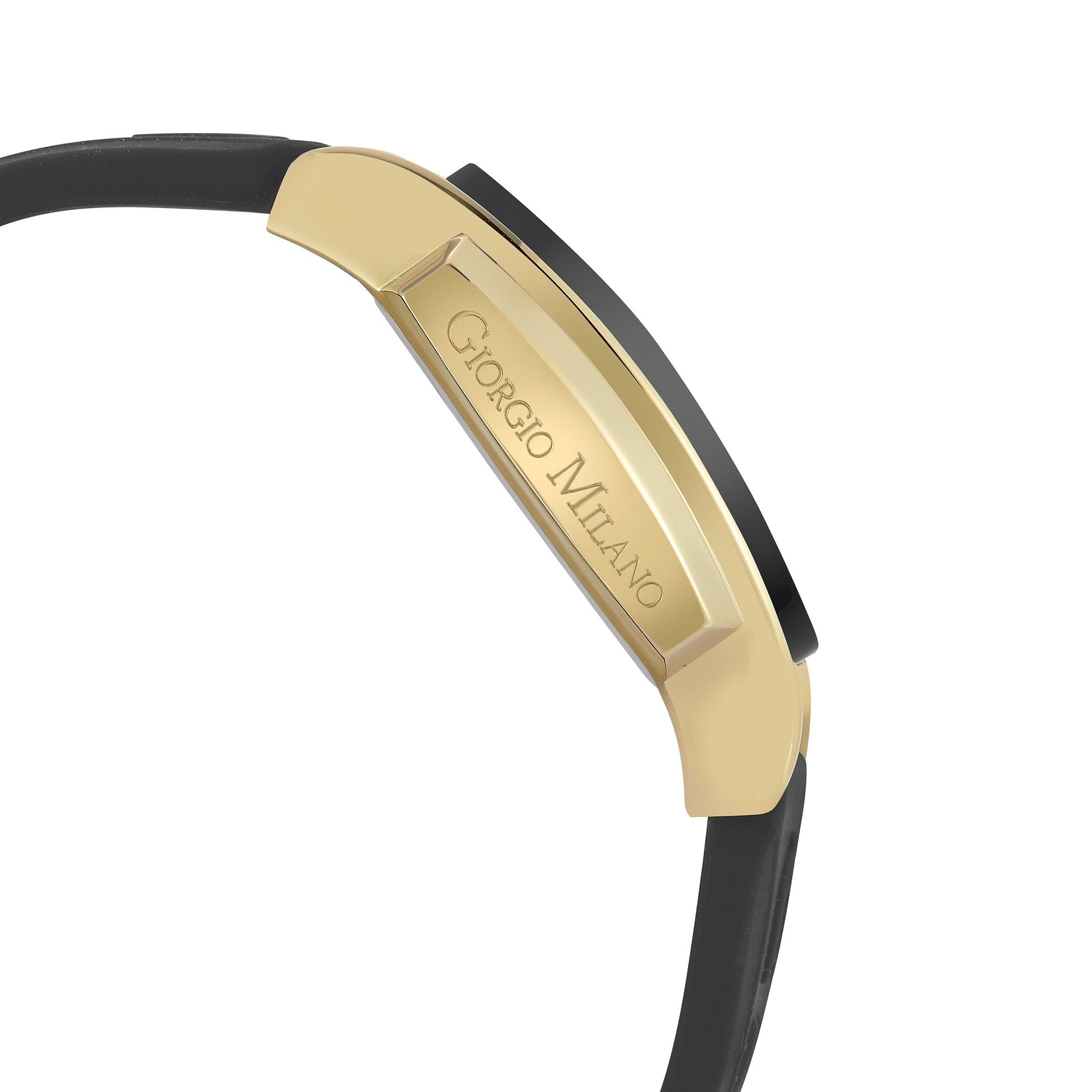 The Giorgio Milano Model 250 is a luxury men’s stainless steel chronograph watch designed for modern sport elegance. Featuring a bold 45.5mm square case, precision quartz chronograph movement, hardened mineral crystal with anti reflection coating, and 100m water resistance. This sport luxury timepiece delivers reliable performance with refined everyday style. Finished with a durable silicone strap for superior comfort and versatility.
