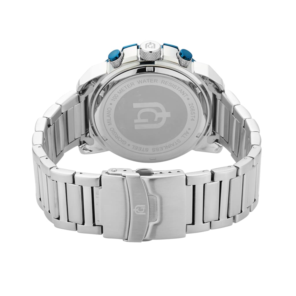 Equipped with chronograph quartz movement and a date window, the DANILO-206 offers efficiency and accuracy. The oversize crown button ensures that adjustments are simple, especially for larger hands. The bracelet, designed to comfortably fit a man's wrist, features a flip lock and double safety for added security.