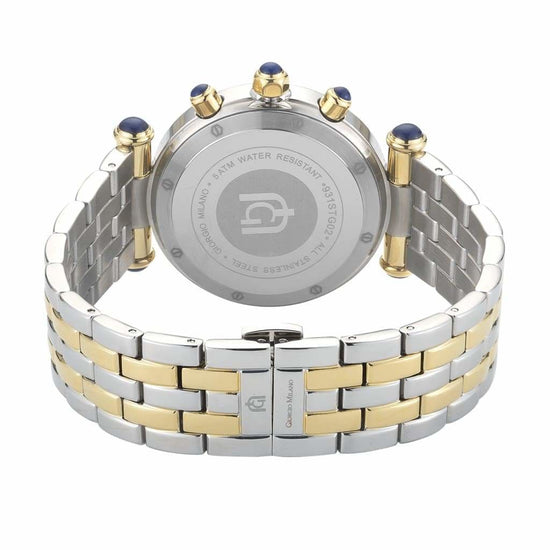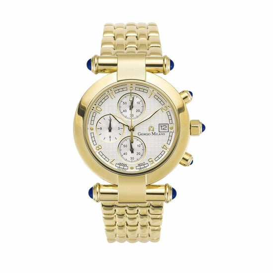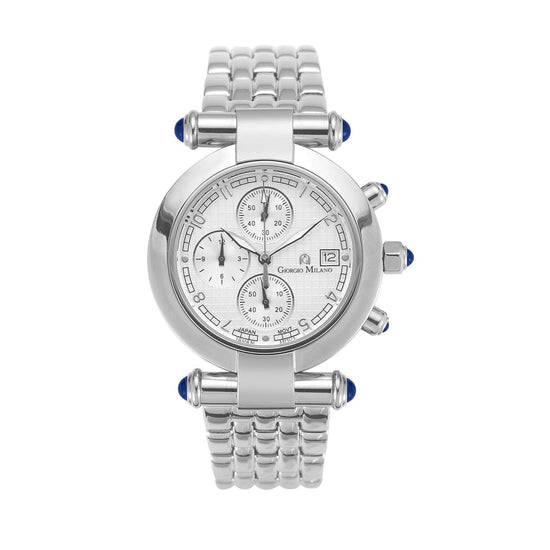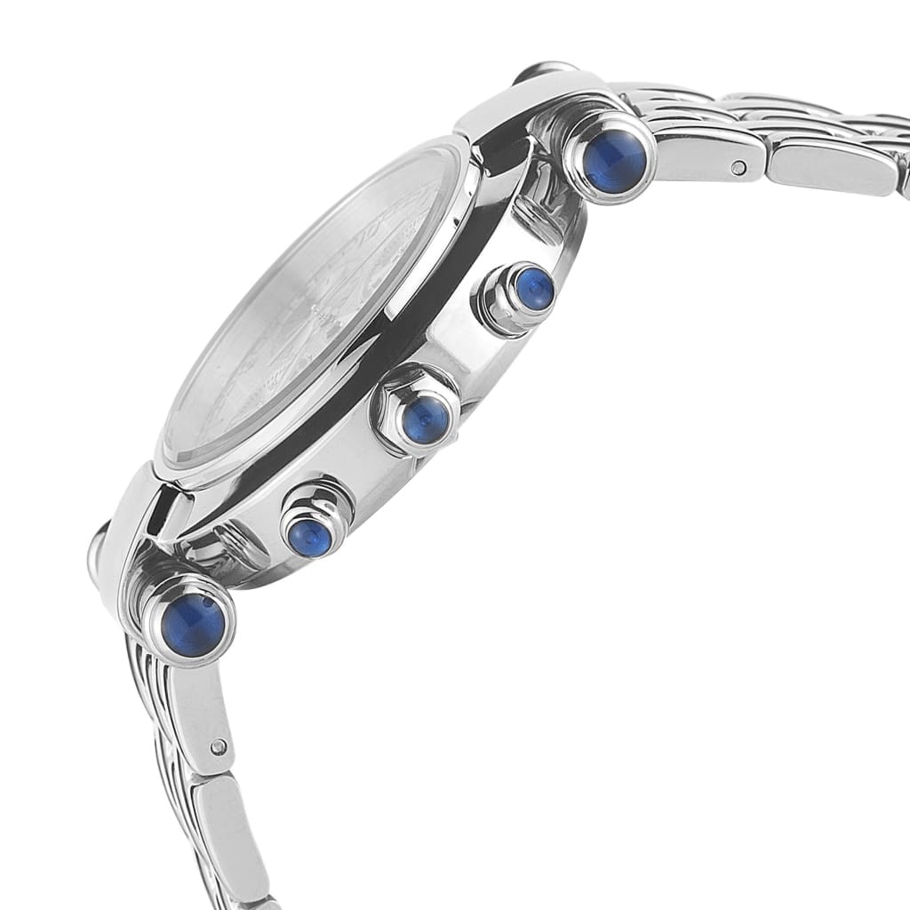 Accents of blue cabochon stones and a push-button crown reset add an extra touch of refinement to this stunning timepiece. The stainless steel case, paired with a push-button deployment clasp, ensures secure wear, while the hardened mineral crystal is screwed down for water resistance up to 100m. Shock-resistant and designed to keep up with your adventurous lifestyle, LUCIA is a watch you can rely on.