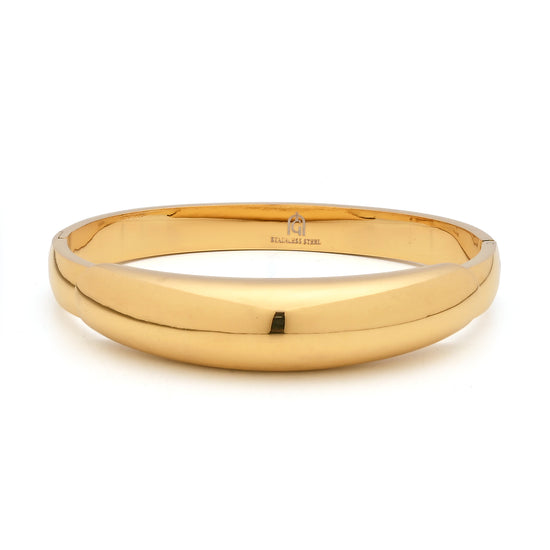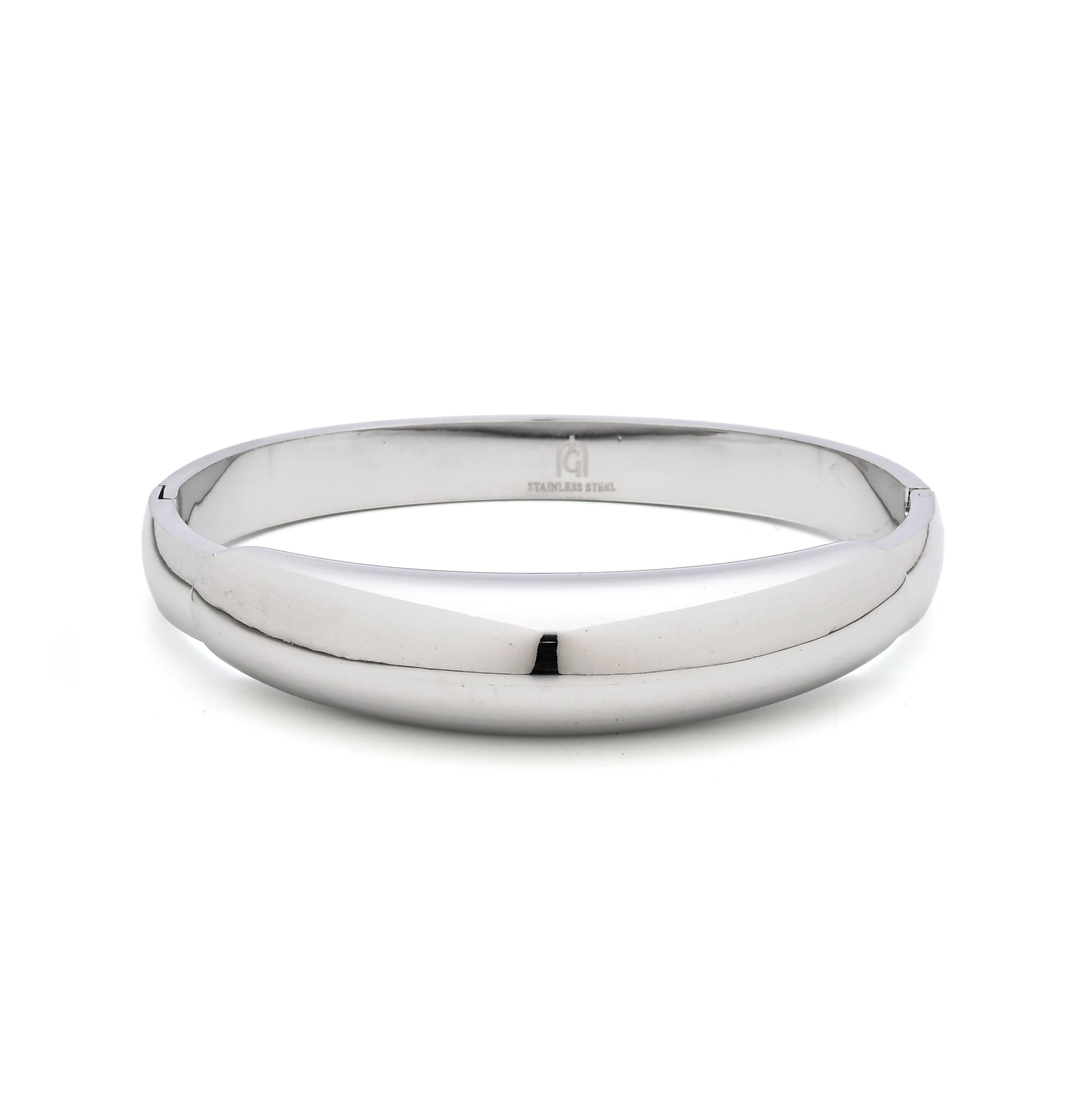 Design: Sculpted solid hinged bangle with rounded orbital silhouette